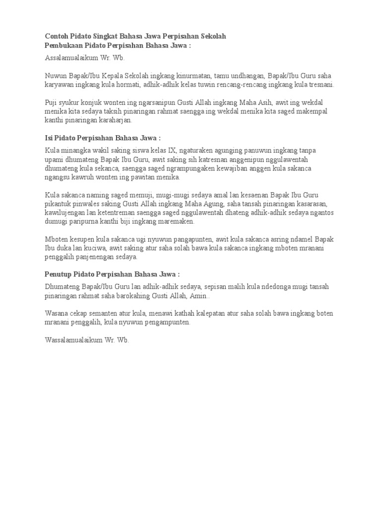 Contoh Pidato Bahasa Jawa Tentang Perpisahan Assalamualaikum Wr.