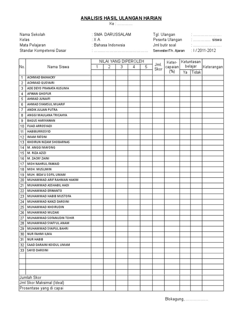 Analisis ulangan harian essay an essay! Untuk itu saya akan membagikan file sebuah analisis kelas 6 sd kurikulum 2013 yang dapat diunduh diakhir artikel ini. Format analisis hasil ulangan harian dengan excel ini merupakan file yang akan saya bagikan pada kesempatan kali ini. Wwwilmusosialid begitulah informasi yang bisa kami uraikan mengenai contoh format analisis ulangan harian k13 sd. Buku analisa hasil evaluasi program perbaikan dan pengayaan sesuai kurikulum 2013 (k13). 37 full pdfs related to this paper. A short summary of this paper. Analisis hasil penilaian samsul hadi. Aplikasi analisis nilai ulangan harian akan admin ulas/ share dikhususkan untuk sekolah tingkat dasar sd, sekolah yang menggunakan sistem pembelajaran kurikulum 2013.
