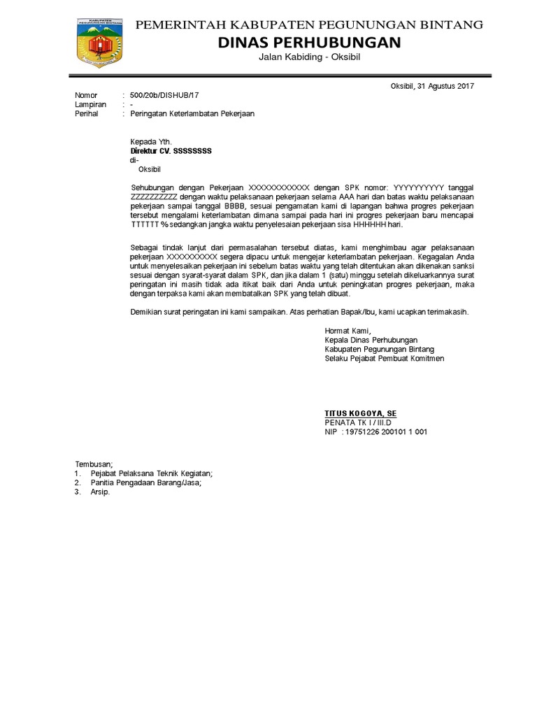 Contoh surat teguran untuk guru; Memang peraturan di perusahaan swasta, umumnya lebih ketat dari pada peraturan untuk pegawai negeri sipil, namun bukan berarti jika seorang pns bisa bertindak sesuka hati. Contoh surat somasi pembayaran hutang surat. The collection that consisting of chosen picture. Download contoh surat teguran yang benar dan baik contoh surat teguran tertulis pns, 11 11 2019 peringatan tersebut umumnya terbagi menjadi dua teguran lisan dan tertulis bila kita melakukan kesalahan kecil dan baru pertama kali maka kita hanya akan mendapatkan teguran secara lisan tapi bila kita telah berulang kali maka kita akan mendapat. Contoh surat teguran kepada perusahaan have a graphic from the other.contoh surat teguran kepada perusahaan it also will feature a picture of a kind that may be seen in the gallery of contoh surat teguran kepada perusahaan. Contoh surat teguran pns tidak masuk kerja. Kebraon ii dan outlet inlet boezem. Doc contoh soal ujian perangkat desa agung.