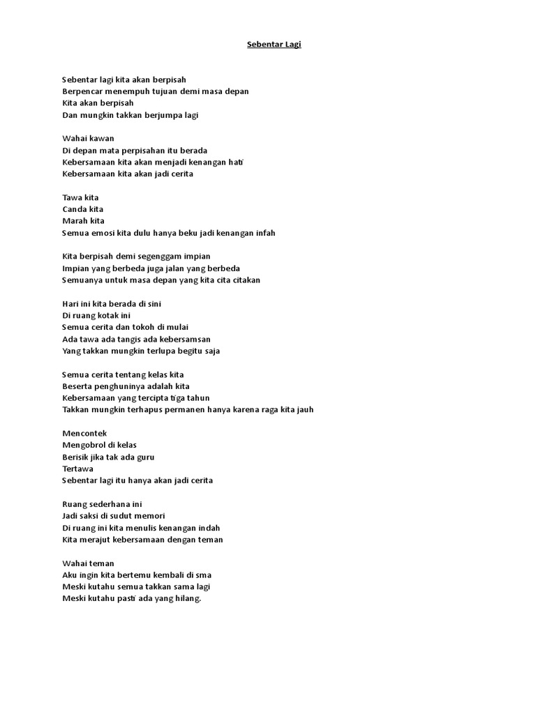 Di hari minggu pergi ke hutan, bertemu burung berwarna. Dia yang maha memberi keputusan. Bbiasnya klu udah kayak gini kelas tiga ngadain acara perpisaha kelas. Ekonomi, geografi, , hingga sosiologi. Kelas xii ipa 4 sman 1 watansoppeng. Berikut ini adalah beberapa contoh puisi yang bertemakan tentang perpisaha untuk guru di sekolah : Sobat, dialah yang maha mengatur. Proposal tentang perpisahan sekolah pigura. Lama kita berjalan di atas kebahagiaan yang penuh kegembiraan.