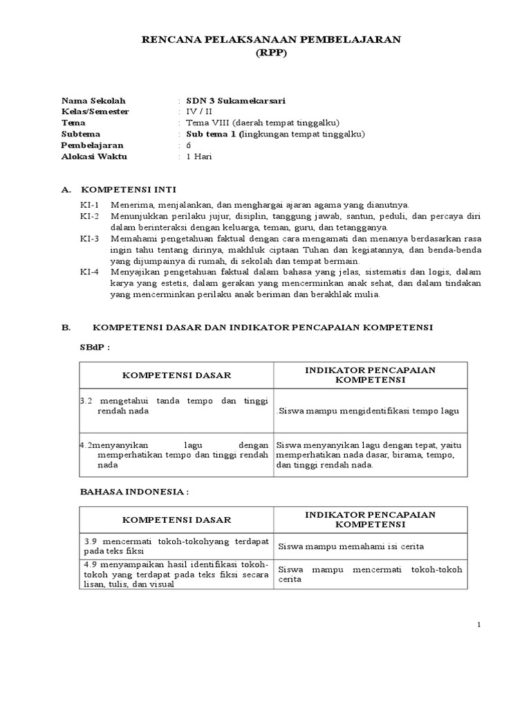 Rpp tematik kelas 4 sd tema 8 daerah tempat tinggalku semester 2 kurikulum 2013 revisi 2017. Blog rangkuman materi soal latihan dan pembahasan sd, rangkuman materi sd,rpp,perangkat pembelajaran kurikulum 2013,parenting, tempat wisata menarik, info dan tips. Nadiem makarim (mendikbud) mengungakapkan bahwa guru butuh waktu istirahat, jadi dengan meminimalisir waktu saat mempersiapkan perangkat pembelajaran menjadi lebih efisien. Subtema 2 keunikan daerah tempat tinggalku. Sahabat dunia pendidikan yang berbahagia, rencana pelaksanaan pembelajaran (rpp) tematik kelas 4 sd tema 8 kurikulum 2013 revisi 2017, disusun berdasarkan permendikbud nomor: Download rpp kelas 4 semester 2 tema 8 k13 revisi 2018 terintegrasi literasi, ppk, 4c dan hots. Begitupun rpp kelas 4 tema 8 k13 revisi 2018 telah terintegrasi dengan literasi abad 21, 4c (creative, critical thinking, communicative, dan collaborative. 87 rpp kelas iv semester 2tema : Pada pembuatan rpp 1 lembar pendidikan jasmani olahraga dan kesehatan kelas 4 tema 8 ini dicukupkan hanya satu lembar saja.