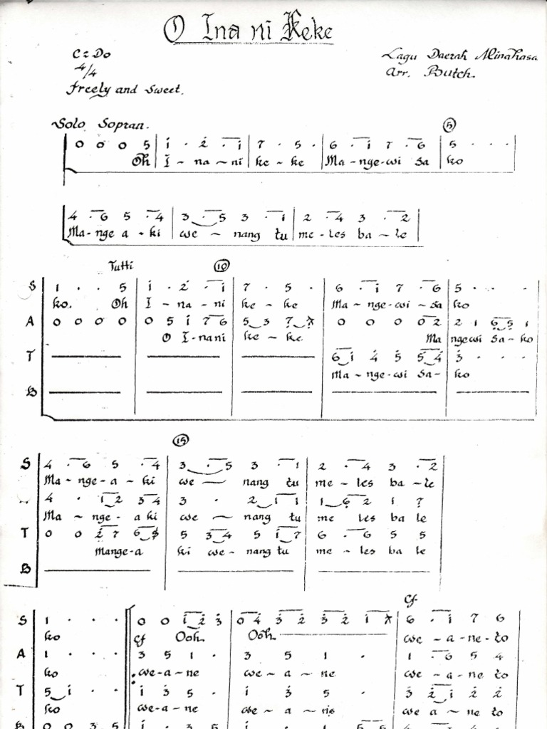 Pada kesempatan kali ini, saya akan kembali mengulas sebuah lagu tradisional indonesia, yaknia makna lagu o ina ni keke. We ane, we ane, we ane toyo. Membaca not angka nada d dibahas kali ini. O ina ni keke, mange wisa ko mangewa aki wenang, tumeles baleko o ina ni keke, mangewi sako mangewa aki w. Membaca not angka o ina ni keke. Arti lagu o i nani keke. Lagu daerah di indonesia sangat unik dan enak untuk didengar. Kedekatan si ibu dan partner dialognya tampak pada jawaban yang jujur dan “to the point” yang diberikan oleh si ibu ketika ditanya “mau ke mana?”. Mangewa ki wenang, tumeles baleko.