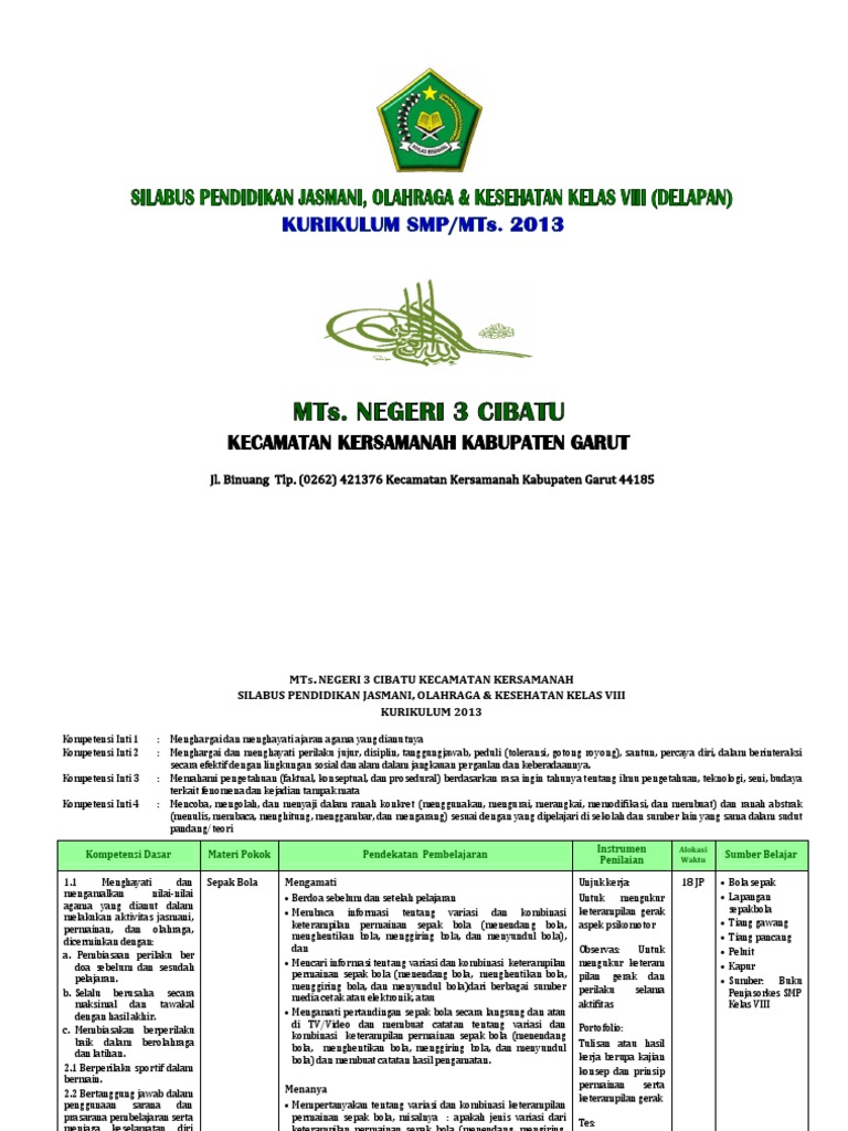 (9.2) Silabus Penjaskes SMP_MTs. Kls.viii Kurikulum 2013 from www.scribd.com