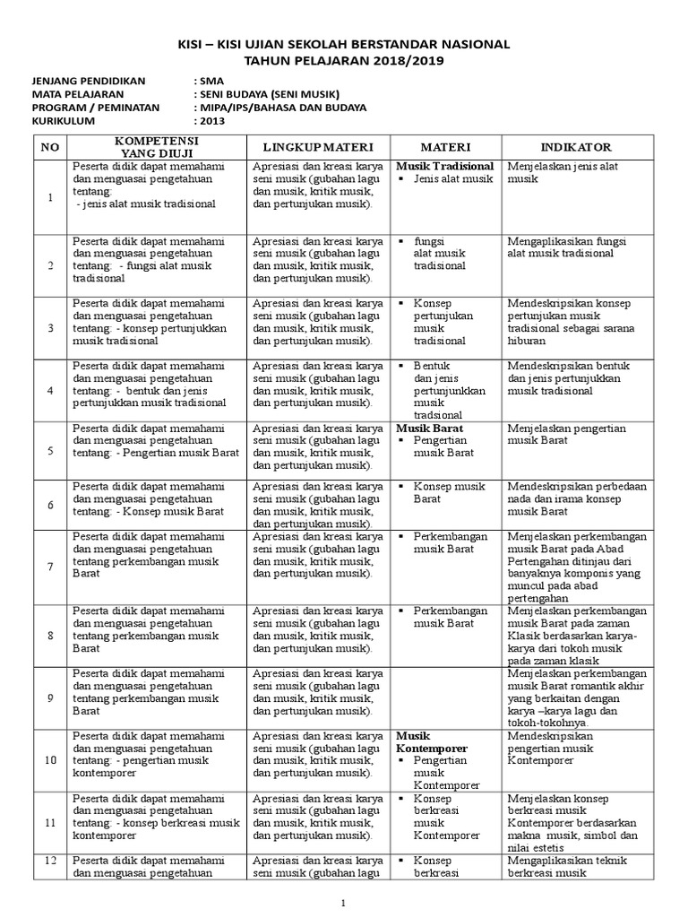 Kisi Kisi Usbn Seni Budaya Smp 2019. Silverius y soeharso ,se., mm., psi dosen 2 : Kisi kisi usbn 2017 2018 kurikulum 2006 dan kurikulum 2013. Tahun pelajaran 2019/2020 kurikulum 2013, semoga bermanfaat dan terima kasih atas kunjungannya di yulianipendidik.blogspot.com Sekian tulisan kali ini (download naskah asli soal usbn sma 2019 (seni budaya)) semoga bermanfaat. Workshop nasional ii sagusavi tahun 2019, tangerang banten, 21 september 2019. Para peserta didik yang duduk di bangku sekolah menengah pertama (smp) tahun pelajaran 2019/2020 akan mengikuti kegiatan ujian sekolah berstandar nasional (usbn) yang sekarang berganti nama lagi menjadi hanya. Dalam waktu dekat akan segera dilaksanakan kegiatan ujian sekolah berstandar nasional. Kementerian pendidikan dan kebudayaan » republik indonesia. Kumpulan soal seni budaya sma smk beserta jawaban. Kisi kisi ini sebagai acuan pengembangan dan perakitan naskah soal ujian nasional. Soal tryout usbn mapel bahasa indonesia kelas ix tahun 2019, 2020, 2021; Kompetensi dasar konten/materi bahan kls/ semester indikator soal level bentuk soal nomor soal motif ragam hias tersebut dengan tepat. Di kesempatan kali ini admin akan membagikan latihan soal usbn seni budaya smp. Matematika, bahasa indonesia, ilmu pengetahuan alam (ipa), pendidikan kewarganegaraan, ilmu pengetahuan sosial, bahasa inggris, seni budaya, prakarya, keterampilan dan teknologi informasi dan komunikasi dengan materi sebagai berikut ; Beberapa contoh soal usbn tersebut diantaranya adalah soal usbn smp matematika, bahasa indonesia, bahasa inggris, ipa, ips, ppkn, pai dan budi pekerti, pjok, seni budaya, prakarya dan juga bahasa jawa.