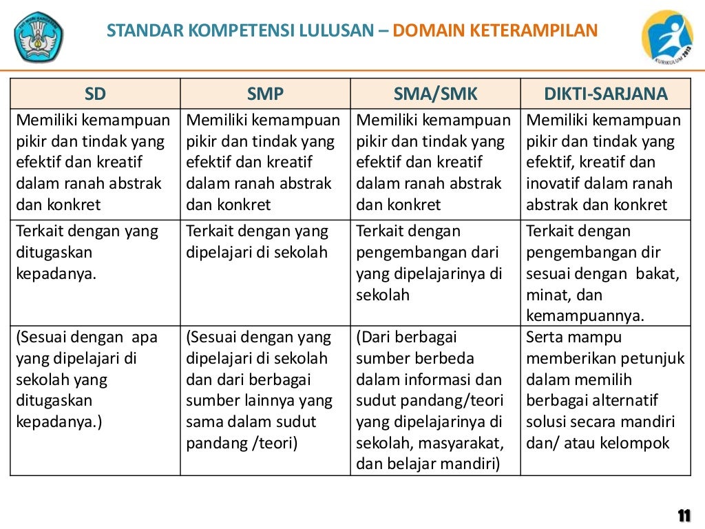 Perkembangan kurikulum di indonesia 1947 1975 2004 rencana pelajaran → kurikulum rintisan dirinci dalam rencana sekolah dasar kurikulum pelajaran terurai berbasis kompetensi (kbk) 1968 1994 kurikulum sekolah kurikulum 1994 2013 dasar kurikulum 2013 1945 1955 1965 1975 1985 1995 2005 2015 1984 kurikulum 1984 2006 1973 kurikulum. Lulusan satuan pendidikan yaitu skl sd, smp, sma, smk. Pelaksanaan kurikulum 2013 selalu mengalami penyesuaian dan… download standar kompetensi lulusan (skl) sd/mi, smp/mts sma/ma berdasar permendikbud nomor 20 tahun 2016 kriteria kualifikasi kemampuan lulusan yang mencakup. Analisis skl, ki, kd, bahasa inggris kelas 10 sma kurikulum 2013 revisi 2017. Ki dan kd merupakan komponen dari kurikulum 2013 yang membutuhkan. Demikianlah analisis skl, ki, kd bahasa inggris peminatan kelas 10/ x sma/ma/smk kurikulum 2013 yang dapat kami bagikan, semoga bermanfaat. Untuk mewujudkan tujuan pendidikan nasional dilakukan secara bertahap dan berjenjang, melalui sistem pendidikan nasional. Kementerian pendidikan dan kebudayaan badan pengembangan sumber daya manusia pendidikan dan kebudayaan dan penjaminan mutu pendidikan standar kompetensi lulusan (skl) kompetensi inti (ki) kompetensi dasar (kd) 2. Sasaran kurikulum 2013 tersebut dituangkan dalam standar kompetensi lulusan (skl).sedangkan tujuan kurikulum 2013 dituangkan dalam standar isi sebagai turunan dari standar kompetensi lulusan (skl), yang terdiri dari kompetensi inti (ki) dan kompetensi dasar (kd).