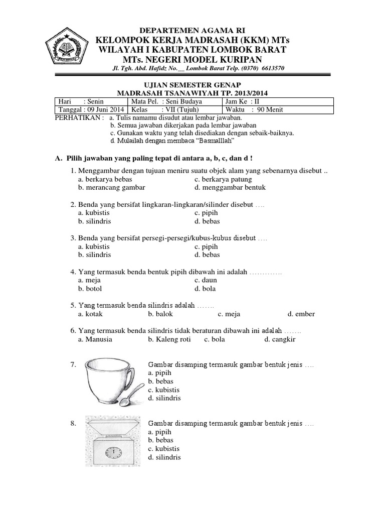 Soal dan jawaban uas seni budaya kelas xi semester 1. Dan untuk materi uas seni budaya adalah sebagai berikut : Soal uas seni budaya kelas 9 semester 1 kurikulum 2013 dan kunci jawabannya tahun 2018, kali ini saya akan bagikan soal pada soal seni budaya kelas 9 semester 1 ini terdiri dari 40 butir soal pilihan ganda dan 5 butir soal essay (uraian). Pada kesempatan ini kami akan berbagi soal, dan kunci jawaban pas seni budaya smp kelas 9. Berikut informasi sepenuhnya tentang contoh soal seni budaya kelas 9 semester 1 beserta jawabannya. Berikut ini soal pas prakarya kelas 9 semester 1 lengkap dengan kunci jawaban untuk bahan belajar sebelum ujian. Soal seni budaya kelas 7 semester 1 2 dan jawabannya kurikulum 2013 tahun 2018 info pendidikan terbaru. Berikut ini adalah soal uas seni budaya smp kelas 9 semester 1 kurikulum 2013 revisi. Salah satu mata pelajaran yang diajarkan di sekolah adalah seni budaya.