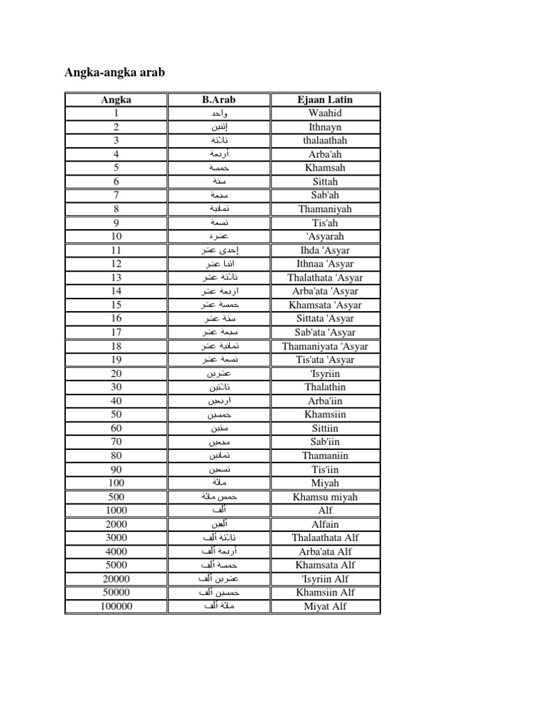 Pembelajaran Dasar Untuk Menguasai Bahasa Arab Adalah Mengenal Angka 1 Sampai 10, Dan Selanjutnya Hingga Bilangan 100.