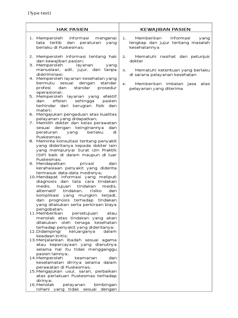 HAK Dan Kewajiban Pasien Puskesmas from www.scribd.com